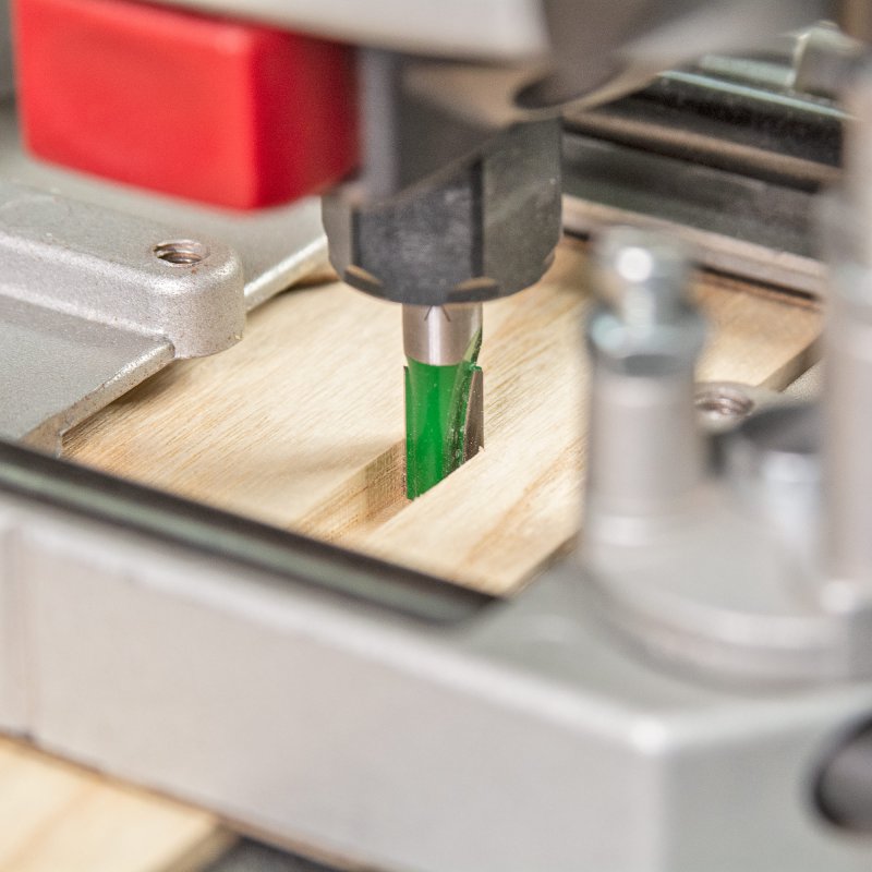 - 1/4" imperial diameter for matched slots and grooves for sheet materials and inlays, shallow mortice work and guide bush templating.