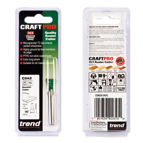 TREND C042X1/4TC CRAFT PRO ROUTER CUTTER DOVETAIL CUTTER 99 DEG X 9.5MM DIA X 9.5MM CUT