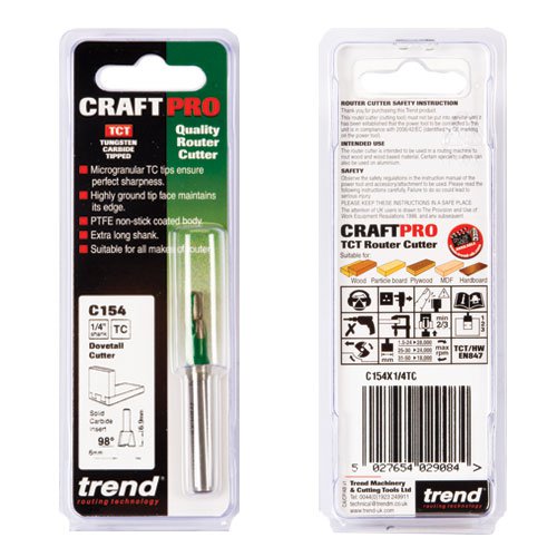 TREND C154X1/4TC CRAFT PRO ROUTER CUTTER DOVETAIL CUTTER 98 DEG X 6.0MM DIA X 6.9MM CUT