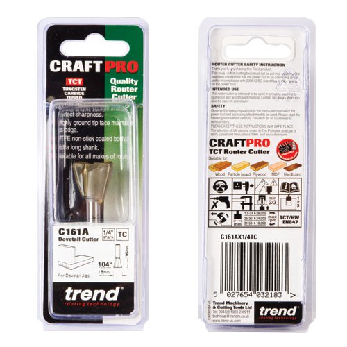 TREND C161AX1/4TC CRAFT PRO ROUTER CUTTER DOVETAIL CUTTER 104 DEG X 18.0MM DIA X 16.0MM CUT (TITAN)