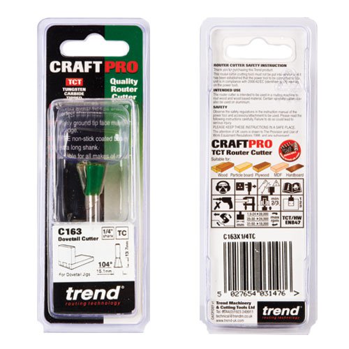 TREND C163X1/4TC CRAFT PRO ROUTER CUTTER DOVETAIL CUTTER 104 DEG X 15.1MM DIA X 13.7MM CUT (NUTOOL)
