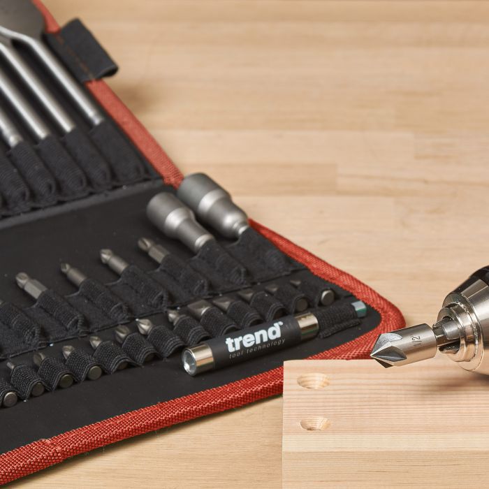 - Twenty-three 25mm insert bits Pozi, Phillips, slotted, Torx and hex.