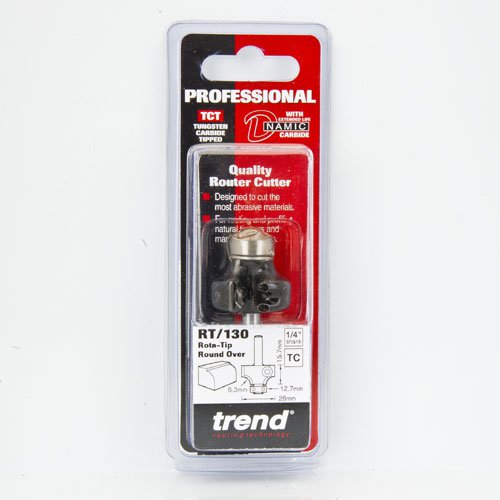 TREND RT/130x1/4TC Professional Rota-Tip Bearing Guided Round Over Router Cutter 6.3mm Rad x 26.0mm dia