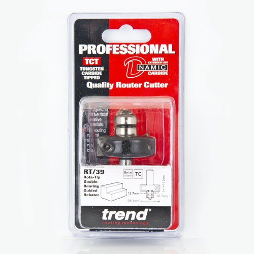 TREND RT/39x8MMTC Professional Rota-Tip Bearing Guided Rebate Router Cutter 12.0mm Cut x 38.1mm dia