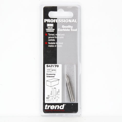 TREND S47/70x1/4STC Professional Economy TC Trimer Router Cutter 60 deg x 6.3mm dia x 6.0mm Cut