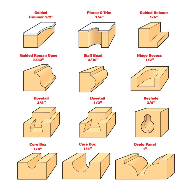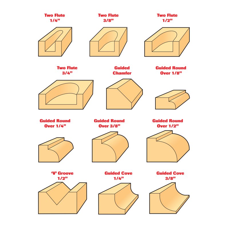- 1/4in shank ideal for smaller routers and an excellent way to experiment, design and learn routing techniques with an extensive range of profiles without expensive outlay