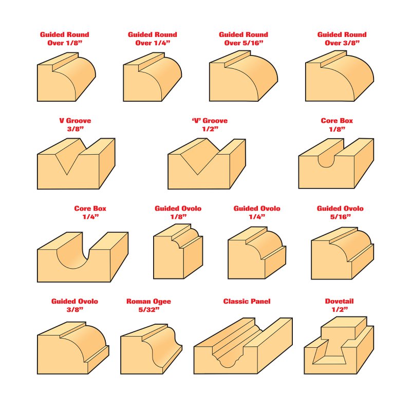 - 4 x Guided round over R3.2, R6.3mm, R7.9mm & R9.5mm