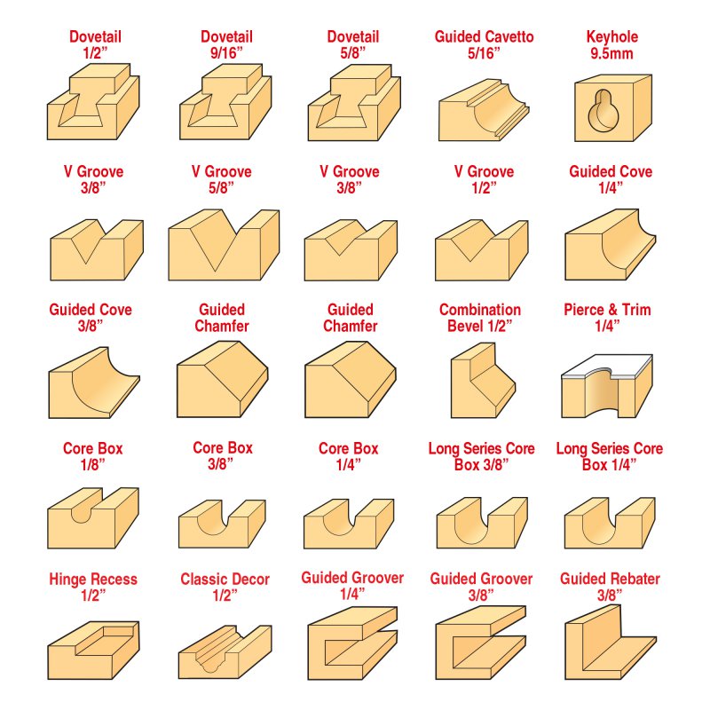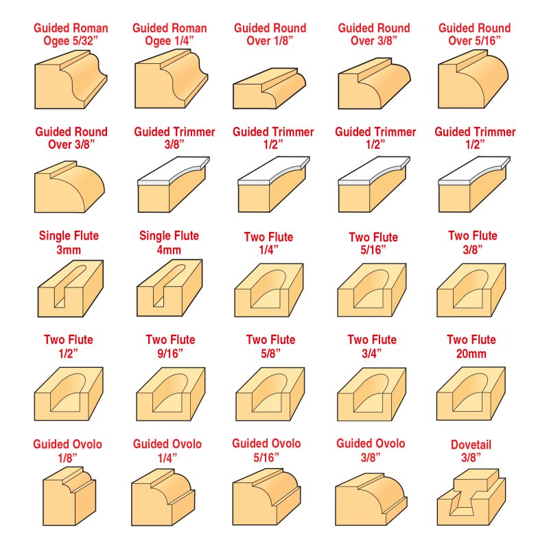 - 4 x Guided round over R3.2mm, R6.3mm, R7.9m & R9.5mm