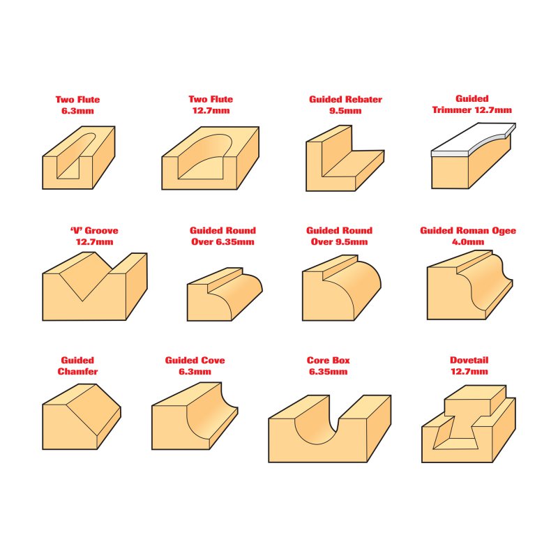 - This twelve piece cutter set contains a range of the most widely used cutters for decorative woodworking