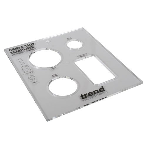 - A template that enables 60mm and 80mm round and 105mm x55mm rectangular holes, to be routed in desks or any surface where cables need to be hidden.