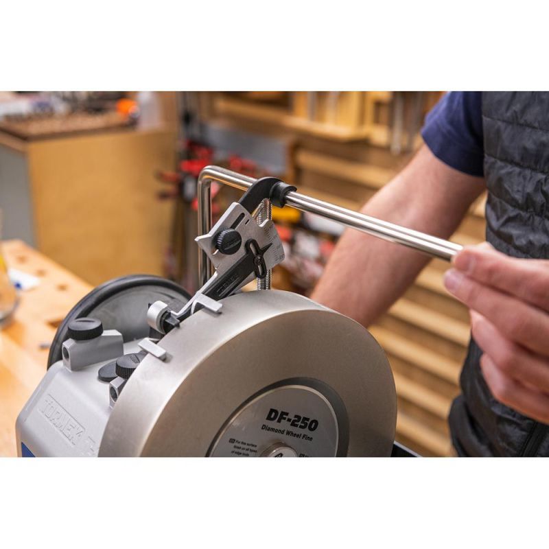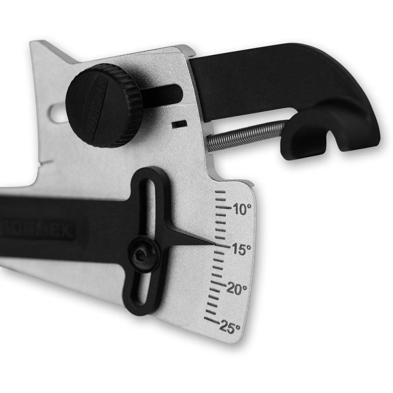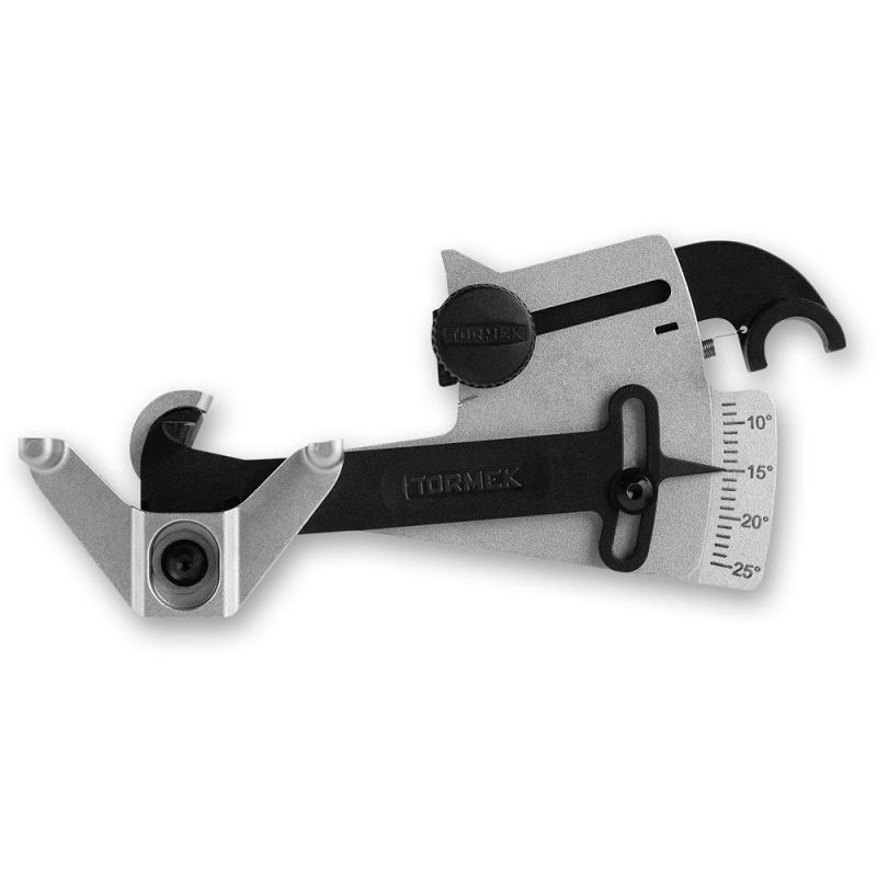 - The KS-123 Knife Angle Setter is a compact and robust tool with dimensions of 156 mm in width, 58 mm in depth, and 70 mm in height. Crafted from durable cast zinc and composite materials, it is designed to fit all Tormek machines with a universal support, this analogue angle setter relies on exact geometric measurements for consistently accurate angle calculations. Its self-adjusting design accommodates different grinding or honing wheel diameters, making it a versatile addition to any sharpening setup.