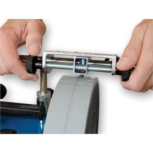 Easy feeding across the stone - You conveniently feed the diamond cutter across the stone by alternately turning the two knobs with both your hands. Thanks to the controlled feed, you get an even and flat stone surface with no ridges.
