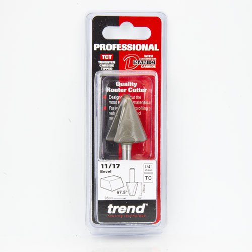 Trend 11/17X1/4TC Pro Mortar Groove Chamfer Router Cutter 67.5 Deg x 28mm Dia x 1/4 Shank