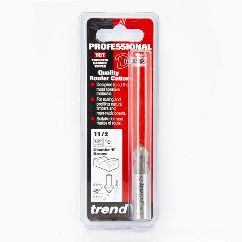 Trend 11/2X1/2TC Pro Chamfer V Groove Router Cutter 45 Deg x 11mm Dia x 1/2 Shank