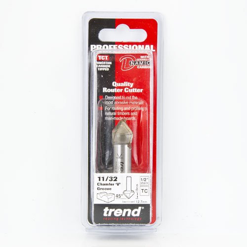 Trend 11/32X1/2TC Pro Chamfer V Groove Router Cutter 45 Deg x 16mm Dia x 1/2 Shank