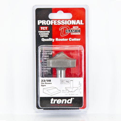 Trend 22/08X1/2TC Pro Roman Ogee Panel Raiser Router Cutter 19/11mm rad x 41.5mm dia x 1/2 shank