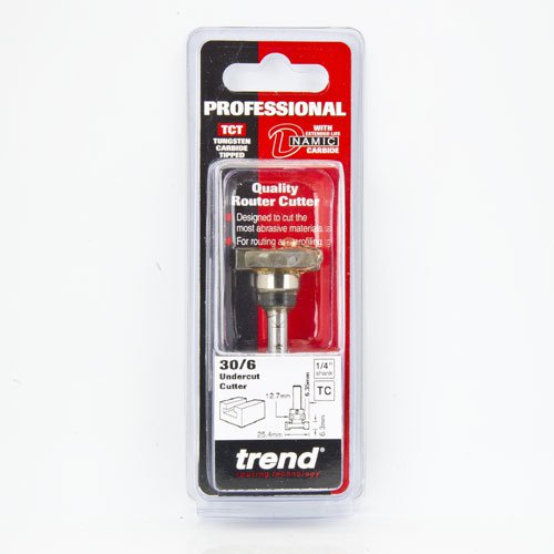 Trend 30/6X1/4TC Pro Guided Undercut Slot Router Cutter 6.35mm cut x 25.4mm dia x 1/4 shank