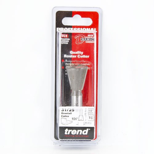 Trend 31/25X1/2TC Pro Dovetail Router Cutter 104 Deg x 25.4mm Dia x 1/2 Shank