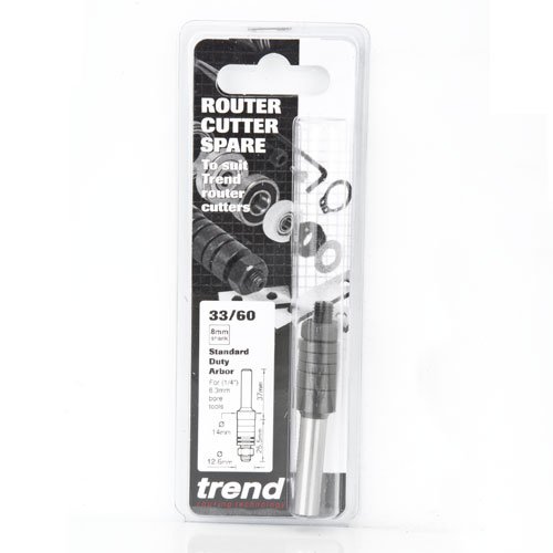 Trend 33/60x8MM Standard Duty Arbor for 1/4 Inch Bore Slotters - 63.5mm length x 8mm shank