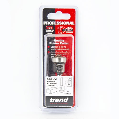 Trend 46/02x1/4TC Rota-Tip Guided Trimmer Router Cutter 19mm dia x 12mm cut x 1/4 shank