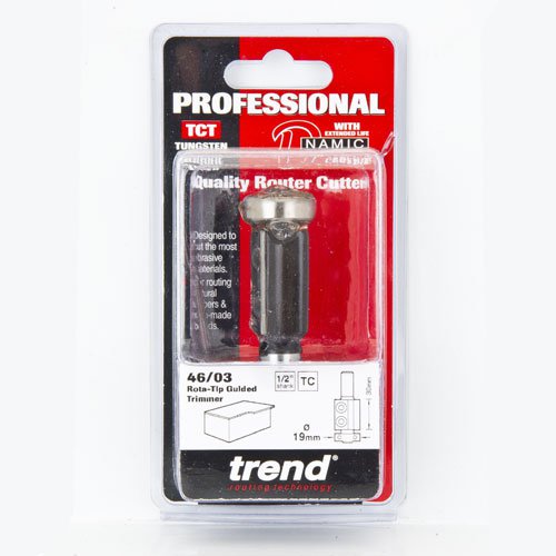 Trend 46/03x1/2TC Rota-Tip Guided Trimmer Router Cutter 19mm dia x 30mm cut x 1/2 shank