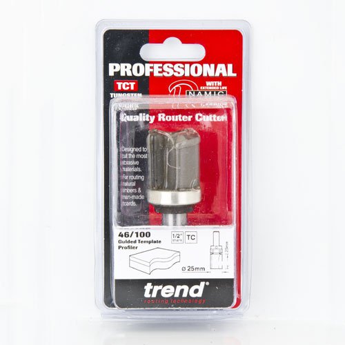 Trend 46/100x1/2TC Pro Guided Template Profiler Router Cutter 25mm Dia x 25mm Cut x 1/2 Shank