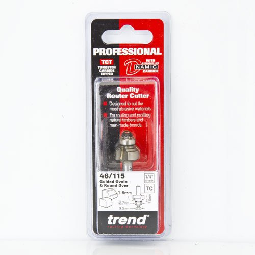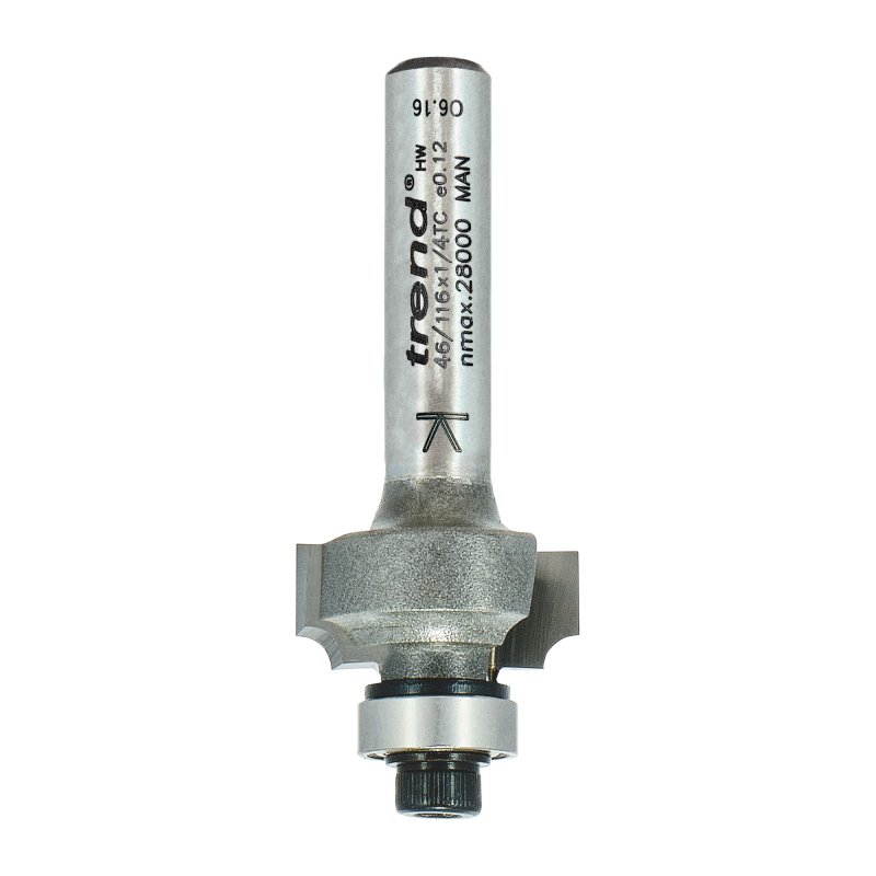 Trend 46/116X1/4TC Pro Guided Roundover Ovolo Router Cutter 2mm Radius x 1/4 Shank
