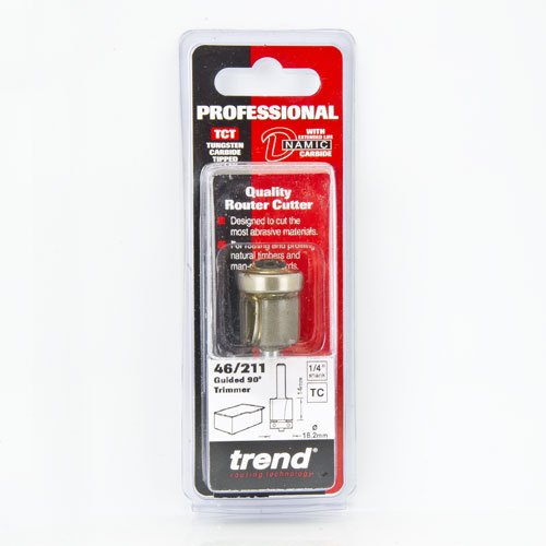 Trend 46/211x1/4TC Pro Guided Trimmer Router Cutter 18.2mm dia x 14mm cut x 1/4 shank