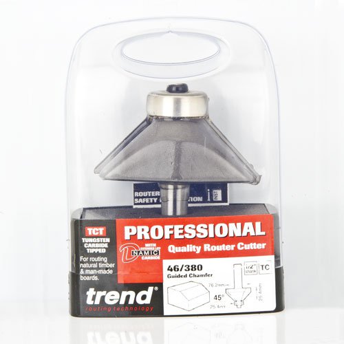 Trend 46/380x1/2TC Pro Guided Chamfer Router Cutter 45 Deg x 76.2mm Dia x 1/2 Shank