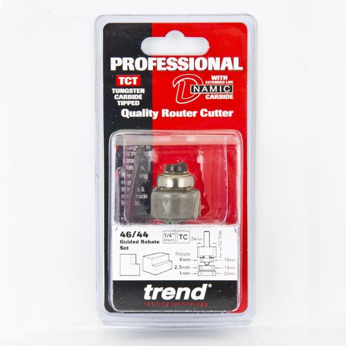 Trend 46/44x1/4TC Pro Guided Rebate Router Cutter 24mm dia x 12.7mm cut x 1/4 shank
