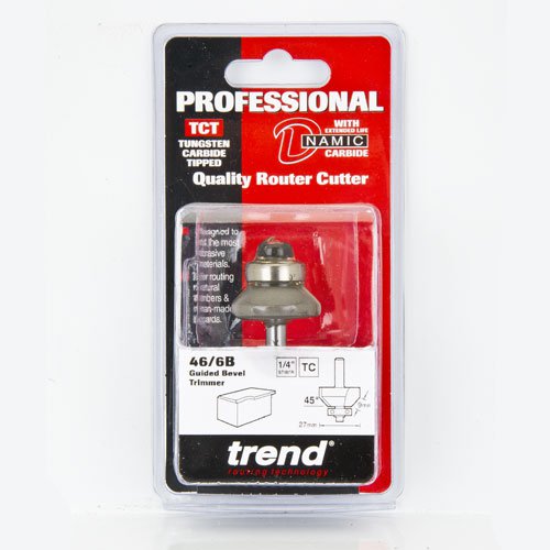 Trend 46/6Bx1/4TC Pro Guided Bevel Trimmer Router Cutter 45 deg x 27mm dia x 1/4 shank