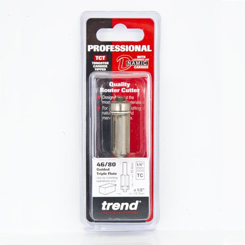 Trend 46/80x1/4TC Pro Guided 3 Flute Trimmer Router Cutter 12.7mm Dia x 25.4mm Cut x 1/4 Shank