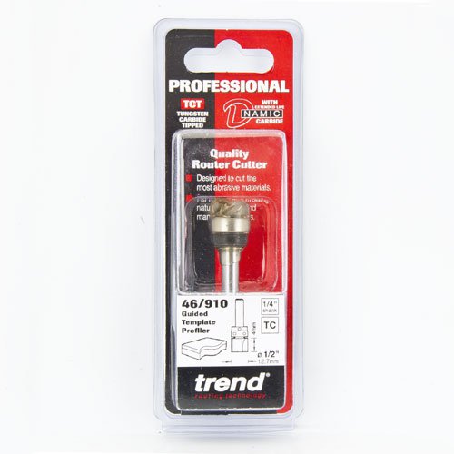 Trend 46/910x1/4TC Pro Guided Template Profiler Router Cutter 12.7mm Dia x 4mm Cut x 1/4 Shank