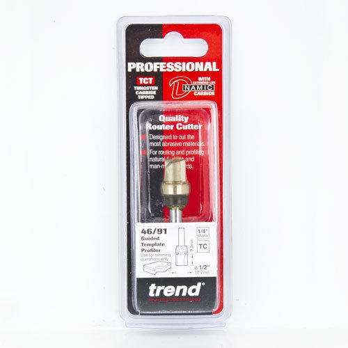 Trend 46/91x1/4TC Pro Guided Template Profiler Router Cutter 12.7mm Dia x 9.5mm Cut x 1/4 Shank