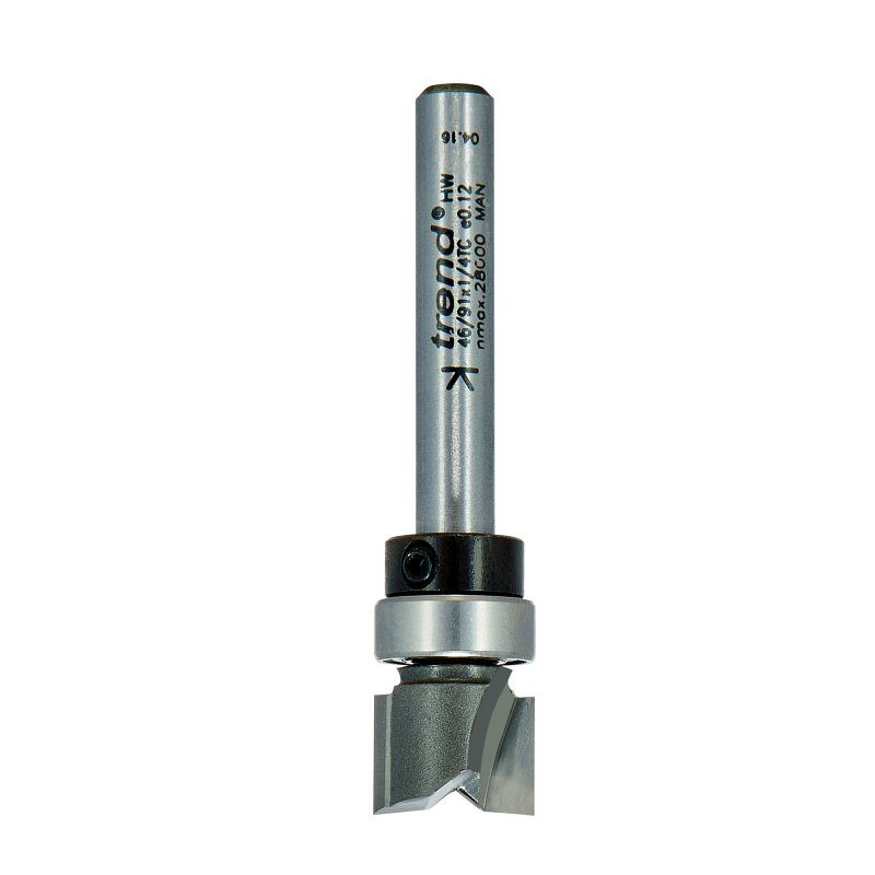 - Trend Professional 1/4in shank bearing guided trimming cutter - 12.7mm diameter for laminate and template work