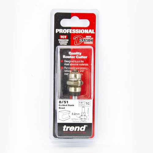 Trend 8/51X1/4TC Pro Double Guided Concave Sunk Bead Router Cutter 3.2mm Radius x 1/4 Shank