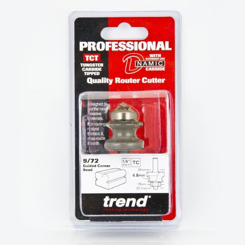 Trend 9/72X1/4TC Pro Guided Corner Bead Router Cutter 4.8mm Radius x 1/4 Shank