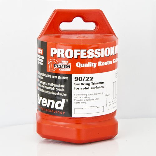 Trend 90/22X1/2TC Pro Solid Surface Six Wing Trimmer Router Cutter 6.5 cut x 52.3mm dia x 1/2 shank