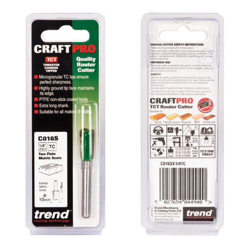 Trend C016SX1/4TC CraftPro Two Flute Metric Scale Router Cutter 10mm Dia x 19.1mm Cut x 1/4 Shank