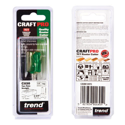 Trend C030X1/4TC CraftPro Two Flute Straight Router Cutter 19.1mm Dia x 25.4mm Cut x 1/4 Shank