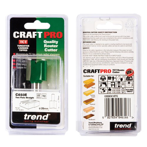 Trend C033EX1/2TC CraftPro Two Flute Straight Router Cutter 26mm Dia x 25mm Cut x 1/2 Shank
