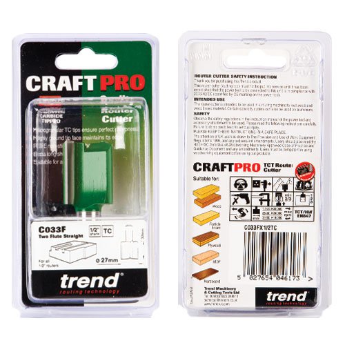 Trend C033FX1/2TC CraftPro Two Flute Straight Router Cutter 27mm Dia x 32mm Cut x 1/2 Shank