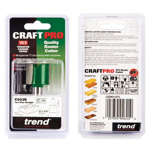 Trend C033KX1/2TC CraftPro Two Flute Straight Router Cutter 31.8mm Dia x 25mm Cut x 1/2 Shank
