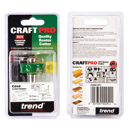 Trend C040X1/2TC CraftPro Guided Rebater Router Cutter 35mm Dia x 12.7mm Cut x 1/2 Shank