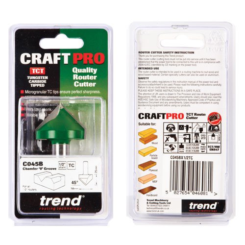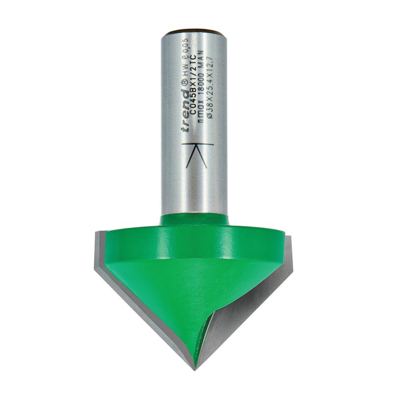 Trend C045BX1/2TC CraftPro Chamfer V Groove Router Cutter 45 Deg x 38mm Dia x 1/2 Shank