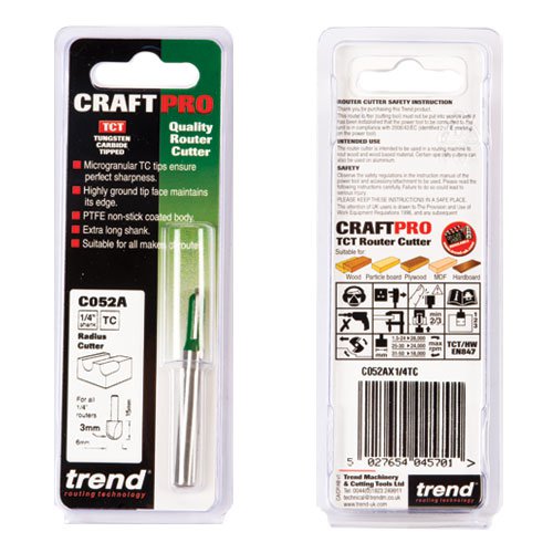 Trend C052AX1/4TC CraftPro Cove Radius Router Cutter 3mm Radius x 15mm Cut x 1/4 Shank