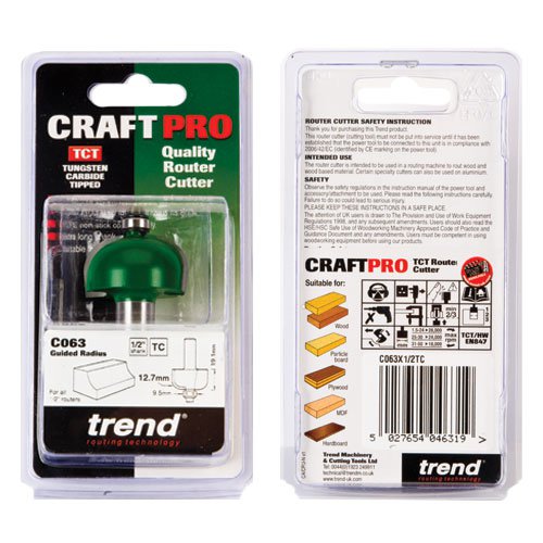 Trend C063X1/2TC CraftPro Guided Radius Router Cutter 12.7mm Radius x 1/2 Shank