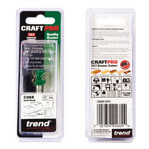 Trend C068X1/4TC CraftPro Staff Bead Router Cutter 2.8mm Radius x 12.7mm Cut x 1/4 Shank