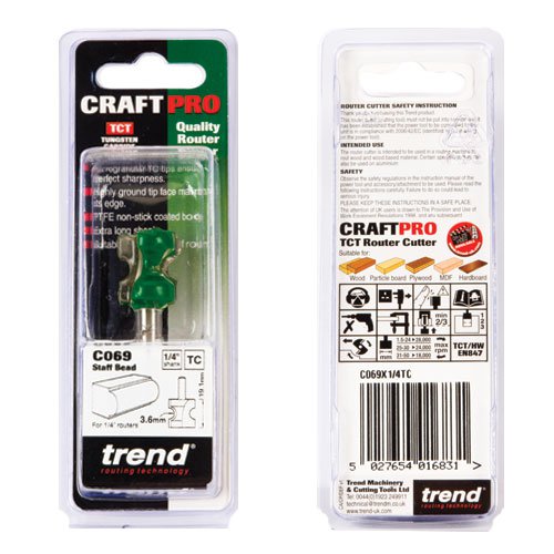 Trend C069X1/4TC CraftPro Staff Bead Router Cutter 3.6mm Radius x 19.1mm Cut x 1/4 Shank