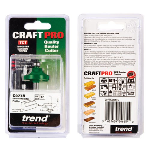 Trend C077AX1/4TC CraftPro Guided Shoulder Profile Router Cutter 9mm Radius x 1/4 Shank